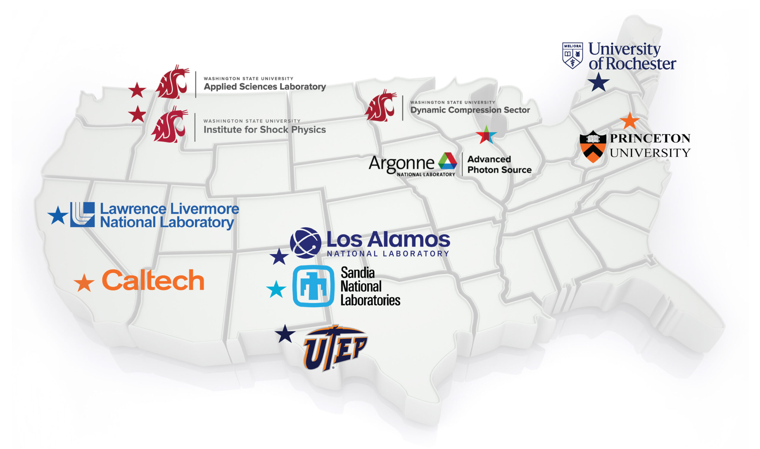 Washington State University operates DCS and led the effort to develop and build DCS experimental capabilities and instrumentation in partnership with the following institutions, with whom meaningful ongoing collaborative efforts continue to advance dynamic compression science:
